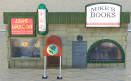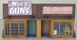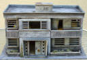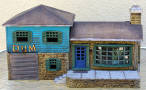 Most of the shells used for the Zombietown buildings are O scale model railroad buildings. We always glue them to a piece of styrene sheet to simulate a floor. This makes the entire Zombietown setup easily storable and portable. The whole thing sets up and breaks down in about an hour - perfect for our mobile Halloween game. But now ..... ON WITH THE SHOW!!! Click the locations below to open up their individual web pages!